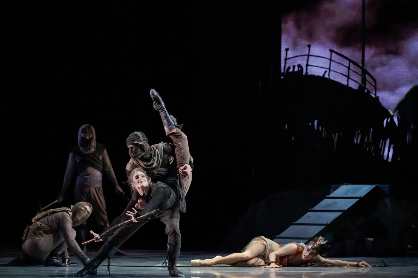 Arrow returns to his people and his lover Neve (performed with grace by Principal dancer Kate Kadow). Neve stands as another strong, positive female lead in this story. The people suffer from drought and the terrorizing presence of The Burnt Mask and his accomplice Elizaveta (performed with artistic brilliance by the exceptional Kirby Selchow).